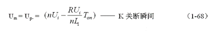 這里還需提請注意,在決定反激式開關(guān)電源輸出電壓的(1-78)式中,并沒有使用反激輸出電壓最大值或峰值Up-的概念,而式使用的Up正好是正擊式輸出電壓的峰值,這是因為反激輸出電壓的最大值或峰值Up-計算比較復(fù)雜((1-68)式),并且峰值Up-的幅度不穩(wěn)定,它會隨著輸出負載大小的變化而變化;而正擊式輸出電壓的峰值Up則不會隨著輸出負載大小的變化而變化。