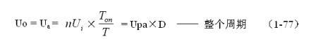 在變壓器開關(guān)電源中,正激式輸出電壓的計算比較簡單,而反激式輸出電壓的計算相對來說很復(fù)雜,因此,如果沒有十分必要,最好采用半波平均值的概念和(1-75)式,通過計算正激電壓的半波平均值,來推算反激式輸出電壓的半波平均值。因此,(1-75)式主要還是用來計算反激式輸出電壓的半波平均值的。