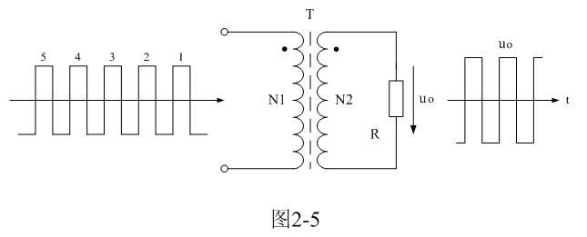 為了簡單起見,我們把雙激式變壓器開關(guān)電源等效成如圖2-5所示電路。圖2-5與圖2-1所示電路的不同之處在于,圖2-1輸入電壓是直流脈沖方波,而圖2-5輸入電壓是交流脈沖電壓方波。因此,圖2-5所示電路與一般的變壓器電路在工作原理上沒有根本的區(qū)別。