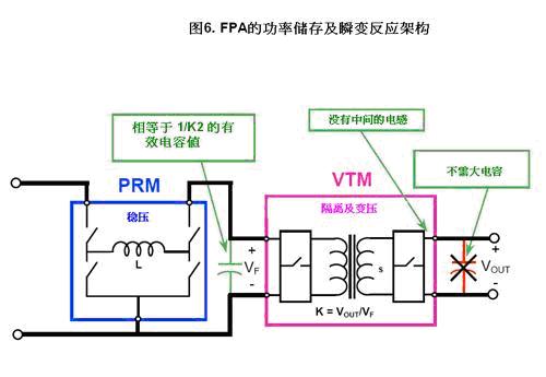跟分布式架構(gòu)或中轉(zhuǎn)母線架構(gòu)不一樣,在分比式架構(gòu),穩(wěn)壓功能由PRM提供,可遠(yuǎn)離負(fù)載。VTM作為負(fù)載點的轉(zhuǎn)換器,它不需要提供穩(wěn)壓的功能,?可以無須靠近負(fù)載。它只負(fù)責(zé)按K比值“倍大電流”或“降低電壓”(VOUT=VfK),VTM可在整個轉(zhuǎn)換周期傳送電流,它的占空比是百份之一百。FPA以分比母線傳輸功率,可以較隨意的選擇電壓,無須如前所述的IBA架構(gòu),因固有的沖突,中轉(zhuǎn)電壓只能選定在稍高于負(fù)載的電壓,否則它的占空比將無法管理。
