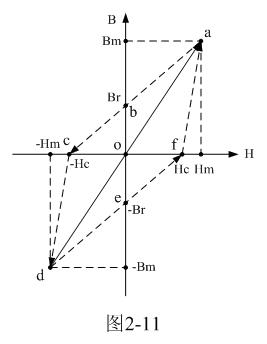 在圖2-11中,直線d-o-a是變壓器鐵芯的理想磁化曲線;當(dāng)輸入電壓為交流的時(shí)候,磁通密度是從負(fù)的最大值- Bm到正的最大值Bm之間來回變化。