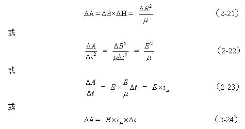 在圖2-12中,ΔA是在變壓器鐵芯磁滯回線中任意取出來進(jìn)行分析的面積,ΔA面積的取值可以任意的小,以保證在此面積中變壓器鐵芯的導(dǎo)磁率可以看成是一個(gè)常數(shù)。與ΔA面積對(duì)應(yīng)的有磁感應(yīng)強(qiáng)度增量ΔB和磁場(chǎng)強(qiáng)度增量ΔH以及時(shí)間增量Δt。根據(jù)磁場(chǎng)強(qiáng)度、磁通密度的定義,以及電磁感應(yīng)的定理,可以列出下面關(guān)系試關(guān)系式: