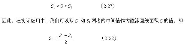 (2-30)式主要用于磁滯回線面積S的值小于第一次估算結(jié)果的情況;(2-31)式主要用于磁滯回線面積S的值大于第一次估算結(jié)果的情況。顯然用(2-30)和(2-31)估算出來的結(jié)果要比用(2-28)估算出來的結(jié)果更精確。