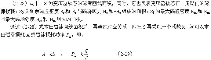 由(2-21)、(2-22)、(2-23)、(2-24)、(2-25)、(2-26)式可知,如要計(jì)算變壓器鐵芯的磁滯損耗,只需要計(jì)算變壓器鐵芯磁滯回線面積的大小,然后通過它們的對(duì)應(yīng)關(guān)系,就可以求出變壓器鐵芯的磁滯損耗。
