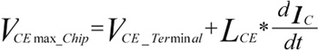 電感LCE對IGBT關(guān)斷時產(chǎn)生的過電壓來說是一個重要的參數(shù),如以下公式所示:
