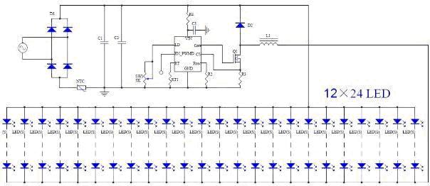 本方案整體供電效率可達(dá)80%以上,典型為85-88%;可調(diào)節(jié)毫安級(jí)到安培級(jí)的輸出應(yīng)用;低頻可變占空比的數(shù)字脈沖調(diào)光功能和線性調(diào)光功能;多達(dá)上百個(gè)LED的串/并聯(lián)使用;內(nèi)部集成頻抖功能改善EMI;外部設(shè)定LED過(guò)溫保護(hù)功能。最大的特點(diǎn)是成本控制好,使用較少的元件,達(dá)到了高效低成本的驅(qū)動(dòng)要求以滿足民用照明的需要。