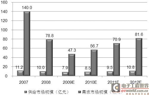 2007年-2012年中國(guó)半導(dǎo)體設(shè)備市場(chǎng)規(guī)模及預(yù)測(cè)