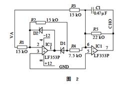 電壓信號VA和電流信號IA經(jīng)與微電平信號REF比較,取得電壓和電流信號的正半周;經(jīng)RC濾波后由信號“或”電路,形成含有功率因數(shù)角的信號;由單片機去除其中的電壓半周期,即得功率因數(shù)角。