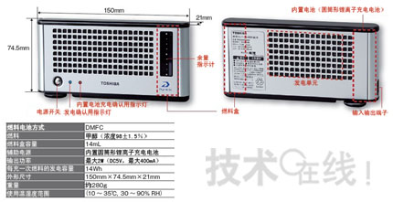 事實(shí)上,東芝只在日本國(guó)內(nèi)限量上市,是為了確認(rèn)普通消費(fèi)者的反應(yīng)。并且,由于這是面世的第一款商品,為確保完善售后服務(wù),將通過該公司的直銷Web網(wǎng)站“Shop1048”銷售。價(jià)格為2萬9800日元。定價(jià)“只比成本略高”(上野)。還同時(shí)上市了填充甲醇(濃度98±1. 5%)燃料專用的50mL燃料瓶(5瓶裝,3150日元)。