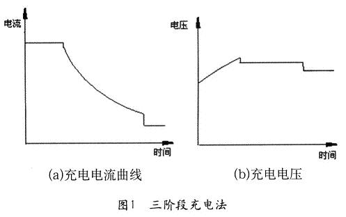 三階段充電法是兩階段等流充電法和恒定等壓充電法相結(jié)合的方式。充電開始和結(jié)束時采用恒定電流,中間階段為恒定電壓充電。蓄電池在充電初期用較大的電流,經(jīng)過一段時間改為恒定電壓充電,當電流衰減到預(yù)定值時,由第二階段轉(zhuǎn)到第三階段。采用三階段充電法的優(yōu)點是:避免了恒定電壓充電法開始充電電流過大,而后期電流又過小的情況,比二階段等流充電在中間階段更接近充電電流接受率曲線。這種充電法減少了充電出氣量,充電又徹底,延長了蓄電池使用壽命。三階段充電法充電電流和充電電壓變化曲線如圖1所示。[page]