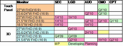 隨著Windows 7推出與對未來市場影響力,2010年多數(shù)面板廠商針對Notebook PC市場積極開發(fā)具觸控功能11.6寸寬螢?zāi)幻姘?,同時每一家生產(chǎn)迷你筆電面板廠商也都開發(fā)具有觸控功能面板。從下表一可以清楚了解每一廠商開發(fā)具觸控功能Notebook PC或迷你筆電面板時間表。