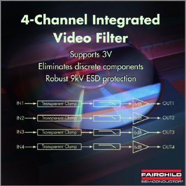 飛兆半導(dǎo)體公司(Fairchild Semiconductor)針對現(xiàn)今許多視頻產(chǎn)品平臺逐步淘汰S-video,以及四通道正在成為標(biāo)準(zhǔn)輸出配置之市場趨勢,推出支持機頂盒和DVD播放器市場的四通道集成式視頻濾波器產(chǎn)品FMS6144A,幫助設(shè)計人員適應(yīng)這一轉(zhuǎn)變。