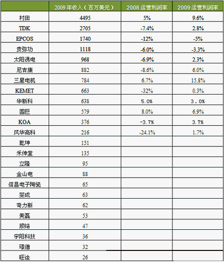 - 水清木華公布了09年全球被動(dòng)元件供應(yīng)商營業(yè)額排名