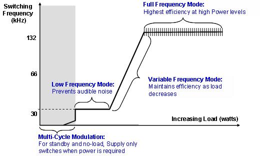 PI市場部資深經(jīng)理李子俊強(qiáng)調(diào)了TOPSwitch-JX特有的多模式控制(MCM)算法,采用該技術(shù)可持續(xù)監(jiān)測輸出功率,以確定最佳開關(guān)模式并改變MOSFET的工作頻率,從而提高整個(gè)負(fù)載范圍內(nèi)的功率效率。該技術(shù)是內(nèi)建在TOPSwitch-JX芯片內(nèi)部的,無需電源工程師做特殊的設(shè)計(jì)。李子俊表示:“開關(guān)電源設(shè)計(jì)的主要訴求是在輕載的時(shí)候如何把電源本身功耗降低,在重載的時(shí)候如何把轉(zhuǎn)換效率提高。采用該特殊的技術(shù),在空載和輕載時(shí)降低開關(guān)頻率,能極大的降低輕載及空載的功耗,對(duì)于能源之星要求的顯示器待機(jī)100mW,適配器空載100mW,以及PC電源待機(jī)0.5W的要求,均能充分滿足。比如針對(duì)一款顯示器的設(shè)計(jì),在264VAC輸入時(shí)空載功耗為66mW,加上待機(jī)時(shí)負(fù)載功耗30mW,完全能滿足標(biāo)準(zhǔn)要求。此外,由于從輕載到重載開關(guān)頻率也在線性變化,從而保證了從輕載到重載的轉(zhuǎn)換效率平整。”