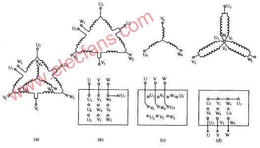 雙速電動機(jī)定子繞組的結(jié)構(gòu)及接線方式如圖所示。