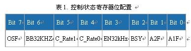 DS3232/DS3234在用戶可編程寄存器中提供了一個域,允許用戶延長溫度更新的時間,從而降低平均電流損耗。兩款器件在控制/狀態(tài)寄存器中提供C_Rate位,用來設(shè)置四種不同的溫度更新周期。寄存器定義如表1所示。
