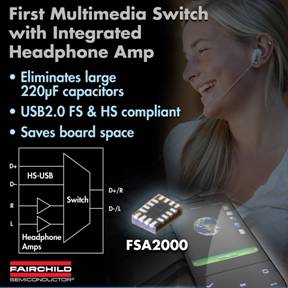 飛兆半導(dǎo)體公司(Fairchild Semiconductor)專注開發(fā)提升用戶滿意度以及使產(chǎn)品取得市場成功的模擬和功率功能,為手機(jī)設(shè)計(jì)人員提供一款集成有無電容耳機(jī)音頻放大器的自動(dòng)選擇高速USB開關(guān)FSA2000,這是業(yè)界首款同類型集成式USB開關(guān)器件,而且能夠減少元件數(shù)量、電路板占用空間并降低材料清單(BOM)成本。