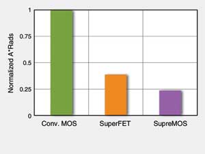 在需要最低RDS(on)與快速切換的應(yīng)用中,新的平衡型器件,例如SupreMOS與SuperFET,可提供最大的優(yōu)勢。一般而言,SuperFET器件在RDS(on)要求為0.5~1Ω之時(shí)優(yōu)勢最大。而SuperMOS在RDS(on)低于0.5Ω時(shí)優(yōu)勢明顯。這一差異又是由于熱阻的作用。