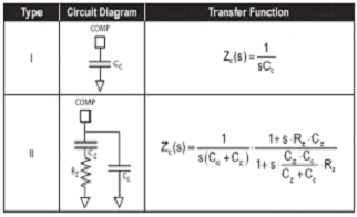 補(bǔ)償回路可用來使得升壓電路穩(wěn)定的操作,可選用Type-Ⅰ補(bǔ)償(一個簡單積分電路)或者TypeⅡ補(bǔ)償(一個積分電路及額外的極點(diǎn)-零點(diǎn))。補(bǔ)償?shù)念愋托枰暪β始壍慕辉筋l率的相位而定。