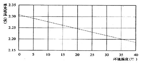 在電源系統(tǒng)中,電池總是在線備用工作的,這樣電池基本處于長期的浮充狀態(tài)中,浮充電壓的選取對電池的長期可靠運(yùn)行起著至關(guān)重要的作用。正如前面看到的,偏高的浮充電壓會造成電池緩慢失水并產(chǎn)生熱失控而使電池失效;偏低的浮充電壓會造成電池長期處于充不飽電的狀態(tài),使電池發(fā)生硫酸化而導(dǎo)致電池失效。正確的浮充電壓一般應(yīng)選在2.23V-2.25V/單體,并應(yīng)隨同電池工作溫度進(jìn)行相應(yīng)調(diào)整。由于電池生產(chǎn)廠家的不同,這一參數(shù)會有一些差異,應(yīng)嚴(yán)格按照廠家提供的參數(shù)選取。圖1是某廠家電池浮充電壓同溫度的關(guān)系曲線。