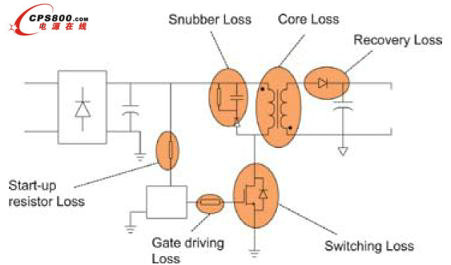 目前,大多數(shù)100W以下的電子設備,如電源適配器、充電器、無繩電話、ADSL路由器、LCD顯示器和DVD等等,都是采用離線反激式開關電路,將電網(wǎng)提供的85V~275V交流電轉換為電子設備所需要的直流電壓。正常工作狀態(tài)下,反激式開關電源的損耗主要包括導通損耗和開關損耗,以及控制電路的損耗。待機狀態(tài)下,因為系統(tǒng)的輸出電流接近于零,導通損耗可以忽略,開關損耗和控制電路的損耗成為主要的系統(tǒng)待機功耗。降低待機功耗,應著眼于開關損耗和控制電路的損耗的降低。