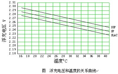 在電源系統(tǒng)中,電池總是在線備用工作的,這樣電池基本處于長期的浮充狀態(tài)中,浮充電壓的選取對電池的長期可靠運(yùn)行起著至關(guān)重要的作用,正如前面看到的,偏高的浮充電壓會(huì)造成電池緩慢失水并發(fā)產(chǎn)生熱失控而使電池失效;偏低的浮充電壓會(huì)造成電池長期處于充不飽電的狀態(tài),使電池發(fā)生硫酸化而導(dǎo)致電池失效。正確的浮充電壓一般應(yīng)選在2.23V/單體.,并應(yīng)隨同電池工作溫度進(jìn)行相應(yīng)調(diào)整,由于電池生產(chǎn)廠家的不同,這一參數(shù)會(huì)有一些差異,應(yīng)嚴(yán)格按照廠家提供的參數(shù)選取。下圖是某廠家電池浮充電壓同溫度的關(guān)系曲線。