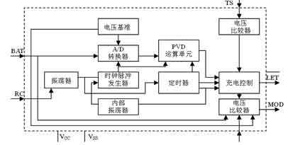 首先,由振蕩器和內(nèi)部振蕩器共同作用到時(shí)鐘脈沖發(fā)生器,產(chǎn)生時(shí)鐘信號(hào),用來控制D/A轉(zhuǎn)換、-ΔV運(yùn)算器及其他有關(guān)單元電路,并使之同步工作。該充電芯片在中斷充電電流期間進(jìn)行采樣,以求采樣的精確。采樣電壓從腳4(BAT)進(jìn)入電路內(nèi)部,經(jīng)A/D轉(zhuǎn)換后送入-ΔV運(yùn)算器處理,并將運(yùn)算結(jié)果送入充電控制單元,隨時(shí)控制充電過程。
