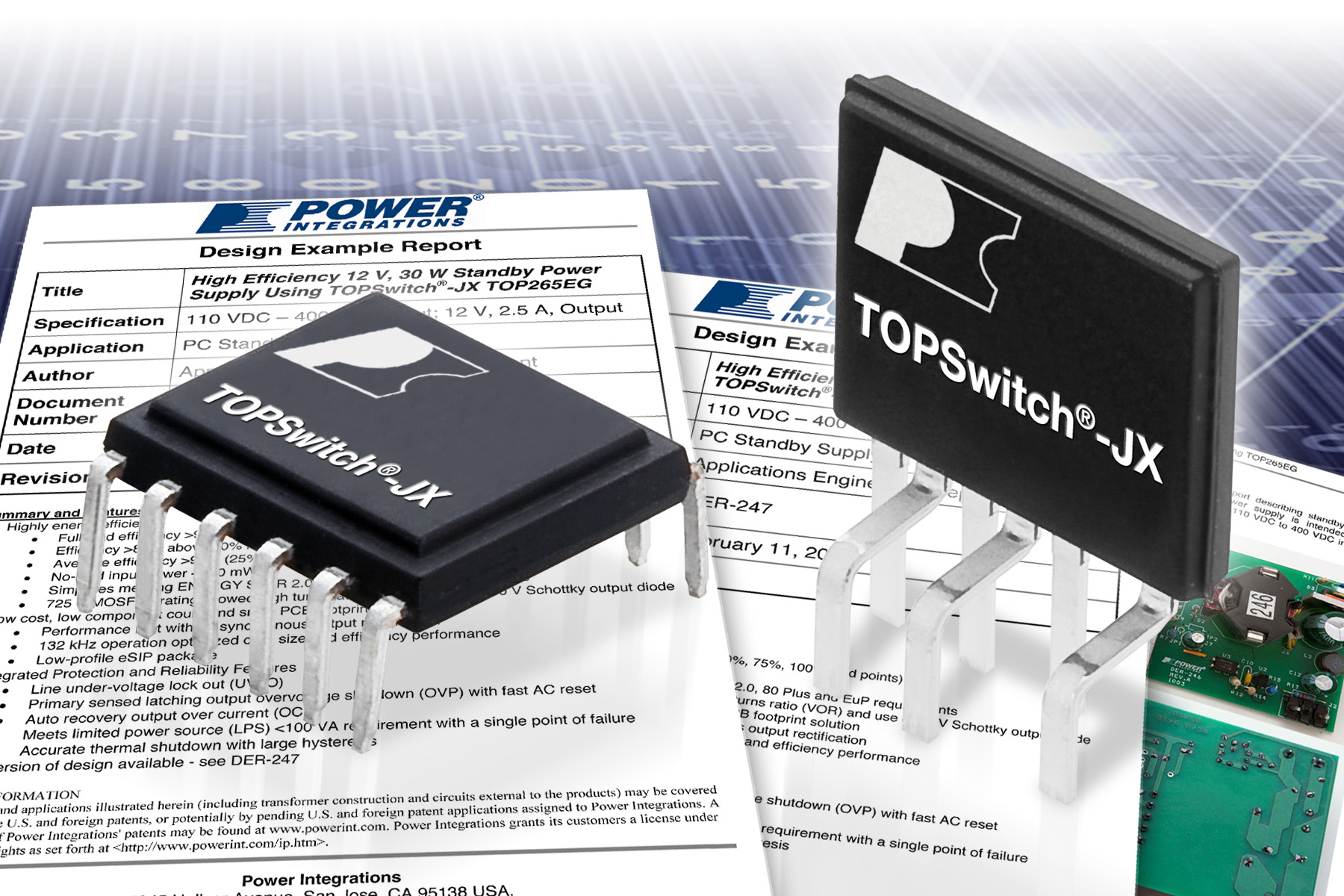 用于高能效電源轉(zhuǎn)換的高壓集成電路業(yè)界的領(lǐng)導(dǎo)者Power Integrations公司,今日宣布推出使用其新近發(fā)布的TOPSwitch-JX IC產(chǎn)品系列設(shè)計(jì)的兩款全新待機(jī)電源參考設(shè)計(jì)。TOPSwitch-JX器件采用多模式控制,不僅可降低電源待機(jī)功耗,還能在整個(gè)工作負(fù)載下實(shí)現(xiàn)最高效率。新的參考設(shè)計(jì)非常適合那些要求滿載效率達(dá)到90%以上,以便輕松滿足嚴(yán)格能效標(biāo)準(zhǔn)的應(yīng)用,這些標(biāo)準(zhǔn)包括80 PLUS? Gold或Silver PC規(guī)范、EuP Lot 6待機(jī)標(biāo)準(zhǔn)以及美國(guó)加州新的電視機(jī)功耗要求。