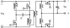 另外,如圖3所示,在采用絕緣變壓器的場(chǎng)合,研究人員還提出了將有源鉗位電路嵌入推挽式轉(zhuǎn)換器中的方案,可在采用48V輸入和1.2V/70A輸出的條件下實(shí)現(xiàn)高達(dá)91%的效率。上面講到的幾種電路方式基本上都是一段式結(jié)構(gòu),最近,出于進(jìn)一步提高效率的考慮,人們正在加緊研發(fā)兩段式結(jié)構(gòu)的轉(zhuǎn)換器。就普通的轉(zhuǎn)換器而言,采用兩段式結(jié)構(gòu)將導(dǎo)致效率下降是人所共知的常識(shí),然而,在低電壓大電流轉(zhuǎn)換器中,對(duì)輸出進(jìn)行同步整流是很普遍的做法,因此,如何實(shí)現(xiàn)同步整流操作的高效化便成為了關(guān)鍵所在。