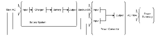 一個(gè)電池系統(tǒng)(一個(gè)AC輸入,一個(gè)電池,一個(gè)充電器和一個(gè)DC輸出)