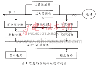 本文設(shè)計(jì)以AT89C51單片機(jī)為核心的異步電動(dòng)機(jī)智能軟起動(dòng)器,該裝置可根據(jù)電動(dòng)機(jī)負(fù)載的特性來(lái)調(diào)整起動(dòng)過(guò)程中的各種參數(shù),是集電動(dòng)機(jī)軟起動(dòng)、軟停車(chē)、輕載節(jié)能和多種保護(hù)功能于一體的電機(jī)控制裝置。