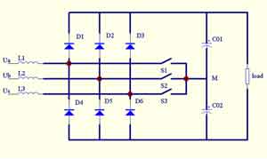 圖4三相三開關三電平APFC電路拓撲圖