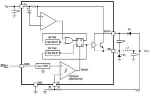 LT1934系列芯片是一種由基準電壓源、振蕩電路和誤差放大器等構成的、PWM控制的CMOS降壓型DC/DC控制器。主要指標:輸入電壓為3.3?34V,輸出電壓為1.5?6.0V,可以0.1V為進階單位來進行設定;低靜態(tài)電流12μA最大值,最大輸出電流300mA。圖4為LT1934的基本電路。