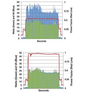 圖1描述了一臺(tái)使用兩種不同電源適配器供電的筆記本電腦的功率消耗。即使實(shí)際負(fù)載一樣,從電力線上供應(yīng)的功率也有很大的不同。這些有價(jià)值的信息現(xiàn)在都可以非常容易地獲得。統(tǒng)計(jì)的結(jié)果可以用于調(diào)整設(shè)備的工作行為。在電壓或線路頻率上的微小降落都有可能預(yù)示著某種供電故障,都會(huì)使設(shè)備進(jìn)入保護(hù)模式。