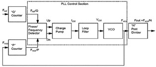 ---其中PLL的部分具有兩個輸入端,分別為參考頻率(Fref)與反饋頻率(Fvco),與一個輸出端(Fout)。三者之間關(guān)系可以公式表示如下。