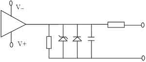 按建造設(shè)計(jì)規(guī)范要求,遙測(cè)輸出采用了雙向限幅電路和限流保護(hù)措施,保護(hù)電路如圖5所示。