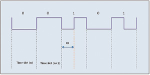 S/PDIF協(xié)議——如上文所述,它是一種單線串行接口,時鐘嵌入數(shù)據(jù)之中。傳輸?shù)臄?shù)據(jù)采用雙相標記編碼。時鐘和幀同步信號在接收器端與雙相解碼數(shù)據(jù)流一同恢復。數(shù)據(jù)流中的每個數(shù)據(jù)位都有一個時隙。時隙以一個躍遷開始,并以一個躍遷結束。如果傳輸?shù)臄?shù)據(jù)位是“1”,則時隙中間還會增加一個躍遷。數(shù)據(jù)位“0”則不需要額外躍遷,躍遷之間的最短間隔稱為單位間隔(UI)。