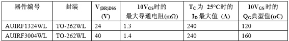 這款新型車用MOSFET系列適合需要低導(dǎo)通電阻(Rds(on))的通用大負荷/高功率通孔應(yīng)用,內(nèi)燃機(ICE)汽車電動助力轉(zhuǎn)向系統(tǒng)和電池開關(guān),以及各類微型和全混合動力汽車。新器件采用IR先進的硅和封裝技術(shù),在顯著提高性能的同時可與現(xiàn)有的設(shè)計標準相匹配。