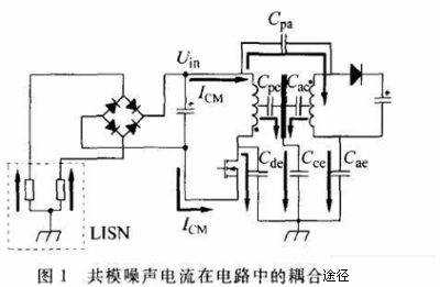 1 反激式開關(guān)電源的共模傳導干擾