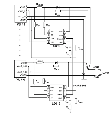 在兩組或多組電源模塊輸出回路中,各串接二極管后并聯(lián)連接,使得當(dāng)單一模塊產(chǎn)生異常時(shí),其它模塊可接續(xù)提供電源,維持系統(tǒng)工常運(yùn)作。其中二極管應(yīng)選擇低順向?qū)妷航?Low Vf),以降低導(dǎo)通損失。