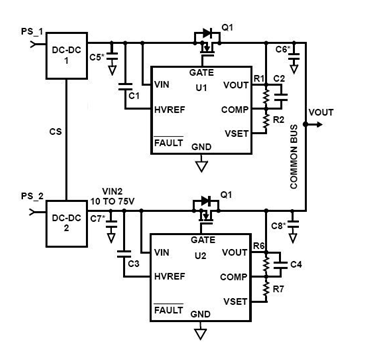 其原理與Drop Resistor相同,使用D1與D2取代電阻的作用,而使用二極管的好處,還可用來防止不同電源模塊之輸出電壓逆流到另一個(gè)電源模塊,這在某些電源架構(gòu)上是需要的。