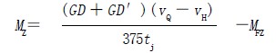 式中,MZ為制動轉(zhuǎn)矩;GD為電動機轉(zhuǎn)動慣量;GD′為電動機負載折算到電動機側(cè)的轉(zhuǎn)動慣量;vQ 為制動前速度;vH 為制動后速度;MFZ 為負載阻轉(zhuǎn)矩;tj 為減速時間。一般情況在進行電動機制動時,電動機內(nèi)部存在一定的損耗,約為額定轉(zhuǎn)矩的18%~22% 左右,如計算出的結(jié)果小于此范圍則就無需接制動裝置。