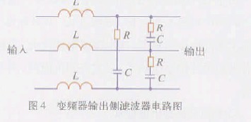 (2)變頻器輸出側(cè)濾波器參數(shù)圖4 為常用變頻器輸出側(cè)濾波器的電路圖。變頻器輸出側(cè)濾波器的輸入側(cè)接變頻器,輸出側(cè)接電動機。