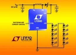 通過充當(dāng)一個(gè)恒定電流源并向每個(gè)白光 LED 輸送相同電流,LT3593 確保了每個(gè)LED 的亮度,而不受 LED 正向電壓降波動(dòng)的影響,該電壓降會(huì)因溫度、制造容差和老化狀況而改變。LT3593 用單線數(shù)字串行接口提供 32:1 的線性亮度控制。其它特點(diǎn)包括停機(jī)時(shí)輸出斷接、LED 開路保護(hù)和 ±5% 的基準(zhǔn)準(zhǔn)確度。