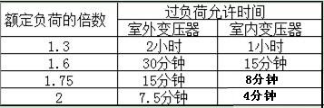 過負(fù)荷運(yùn)行是指變壓器運(yùn)行時超過了銘牌上規(guī)定的電流值。過負(fù)荷分為正常過負(fù)荷和事故過負(fù)荷兩種,前者是指在正常供電情況下,用戶用電量增加而引起的,它往往使變壓器溫度升高,促使變壓器絕緣老化,降低使用壽命,所以不允許變壓器過負(fù)荷運(yùn)行。特殊情況下變壓器短時間內(nèi)的過負(fù)荷運(yùn)行,也不能超過額定負(fù)荷的30%(冬季),在夏季不得超過15%。對后者,事故過負(fù)荷與允許過的時間要求見下表。
