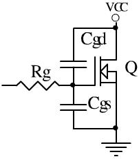 實際使用中還要考慮MOSFET柵漏極還有個電容Cgd的影響,MOSFET ON時Rg還要對Cgd充電,會改變電壓上升斜率,OFF時VCC會通過Cgd向Cgs充電,此時必須保證Cgs上的電荷快速放掉,否則會導(dǎo)致MOSFET的異常導(dǎo)通。