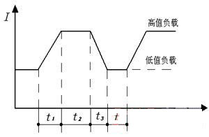 標準草案中,名詞術語部分主要規(guī)范了直流電子負載、定電流模式、定電壓模式、定電阻模式、定功率模式、靜態(tài)負載模式、動態(tài)負載模式、加載、卸載以及保護功能等名詞術語,并針對這些術語進行了定義,例如,將動態(tài)負載模式定義為:直流電子負載輸入端口所吸收的電流按所設定或選擇的變化規(guī)律及特征參數(shù)隨時間進行變換,此種工作模式稱為動態(tài)負載模式,以典型的梯形波負載波形為例,其特性如圖1所示。其他參數(shù)定義不再一一列舉。