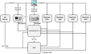 典型的AC/DC電源測(cè)試系統(tǒng)包含了程控交流電源、程控電子負(fù)載、高精度數(shù)字萬(wàn)用表、數(shù)字示波器、多通道程控開(kāi)關(guān)以及工控機(jī)和測(cè)試軟件。