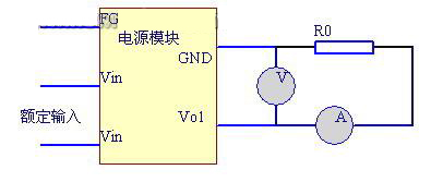 確定了額定負(fù)載以后,將開關(guān)電源額定輸入電壓接上,接通開關(guān)電源的負(fù)載回路,在負(fù)載回路中串一電流表(為安全計(jì),推薦采用串入精密分流電阻器測(cè)其壓降,換算為電流值),測(cè)試回路中的電流,用萬(wàn)用表電壓檔測(cè)試開關(guān)電源輸出電壓。并記錄電壓電流值。接線圖如2 所示,圖中R0 為額定負(fù)載。