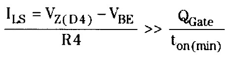 電容C4和二極管D3對(duì)驅(qū)動(dòng)電路的功能至關(guān)重要。通過(guò)選擇電阻R5來(lái)將12V柵極驅(qū)動(dòng)電平設(shè)置在整流器輸出電壓以下。二極管D3將電容C4限定在這一電平。特別是,當(dāng)U1的開(kāi)關(guān)引腳輸出一個(gè)低信號(hào)來(lái)開(kāi)啟功率FET時(shí),信號(hào)被電平位移到Q3的基極。晶體管Q3開(kāi)啟,并快速地將Q4的柵—源電容CGS充電至 12V。如果沒(méi)有C4和D3的話,關(guān)閉Q4會(huì)讓Q3成為一種漏極接地的昂貴的高壓雙極型晶體管。當(dāng)U1的開(kāi)關(guān)引腳輸出一個(gè)高信號(hào)來(lái)關(guān)閉功率FET時(shí),該信號(hào)被電平位移至Q2的基極。Q2開(kāi)啟,有效地將Q4的柵極與輸入電壓連接。在沒(méi)有起到本地電源作用的電容C4的情況下,晶體管Q2和Q3無(wú)法提供快速(且因此而高效地)上拉或下拉Q4柵極電容所必需的快速電流峰值,注意到這一點(diǎn)很重要。另外,由R4設(shè)定的電平位移器電流ILS必須足夠高,以在ton(min) 期間移動(dòng)Q4的柵極電荷QGate。也就是說(shuō):